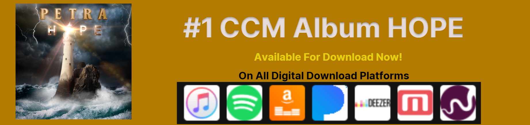 Petra's newest album HOPE, is here on CD and Vinyl only at girdermusic.com. We have special bundles as well as a 45 Hope Bible Studies written by Bob Hartman. CD is $15. Vinyl is $29.98 for Safe Harbor Bone White Vinyl and $36 for the two Limited Run Editions, Surge Blue and Breakers Edge Java. Bible Studies is $9.99